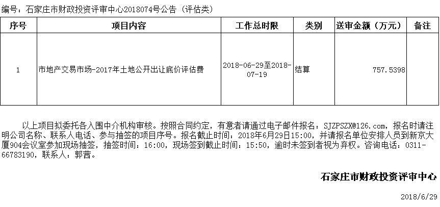 石家庄市财政投资评审中心评审项目公告2018074